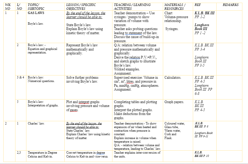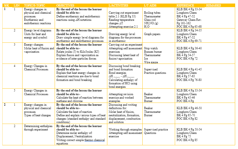 CHEMISTRY FORM 4 2024 SCHEMES OF WORK